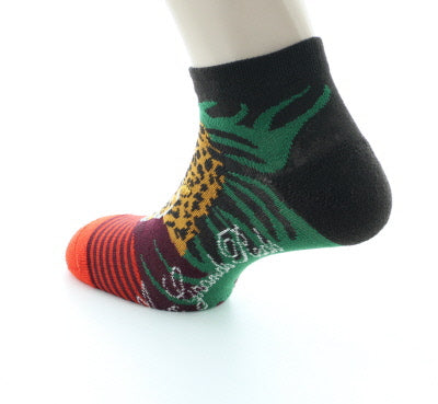 Très originales, ces socquettes Berthe Aux Grands Pieds sont tissées dans des tons orange et marron qui s'accordent naturellement avec les tons fauves de notre félin. La fermeture de la pointe orange est également particulièrement soignée pour un plus grand confort.